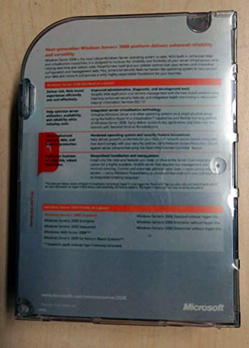 Specification: Microsoft Windows Server 2008 Standard w / SP2 – Licentie en media – 5 CAL’s, 1 server (1-4 CPU) – OEM – DVD – 32/64-bit…